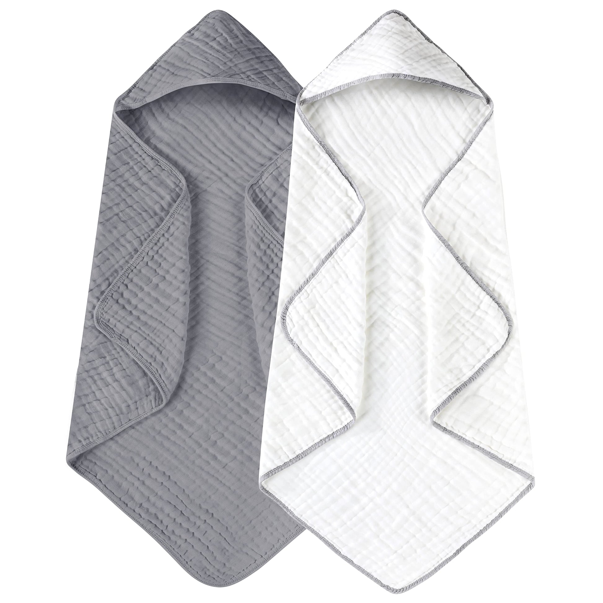 - [Soft and Absorbent] - 100% high quality muslin cotton, the best fabric for babies, makes the baby bath towel super soft than regular cotton towel. It absorbs the water off baby quickly and keeps baby warm after baths.