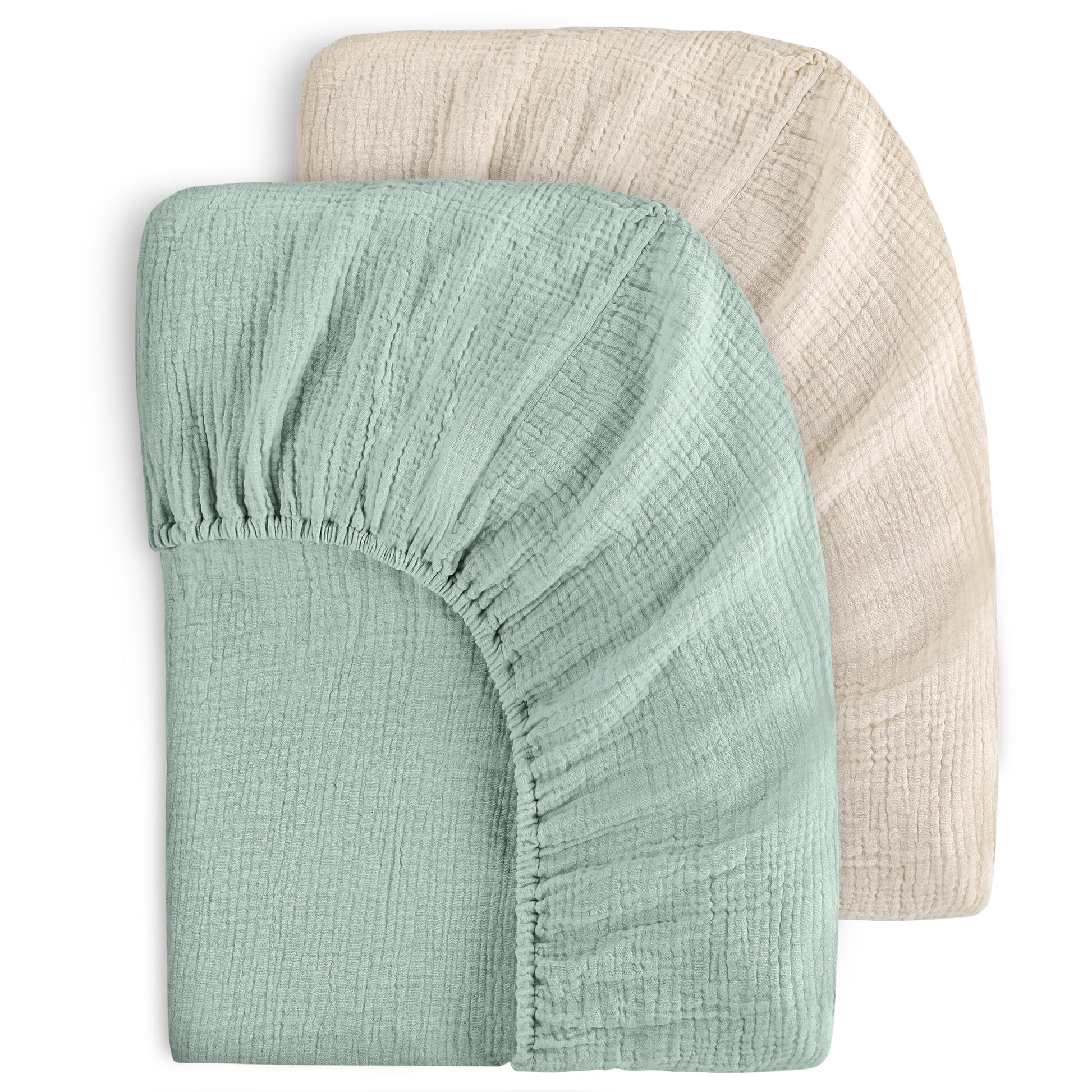 Muslin Fitted Crib Sheets Green & Leaf, 2 Pack