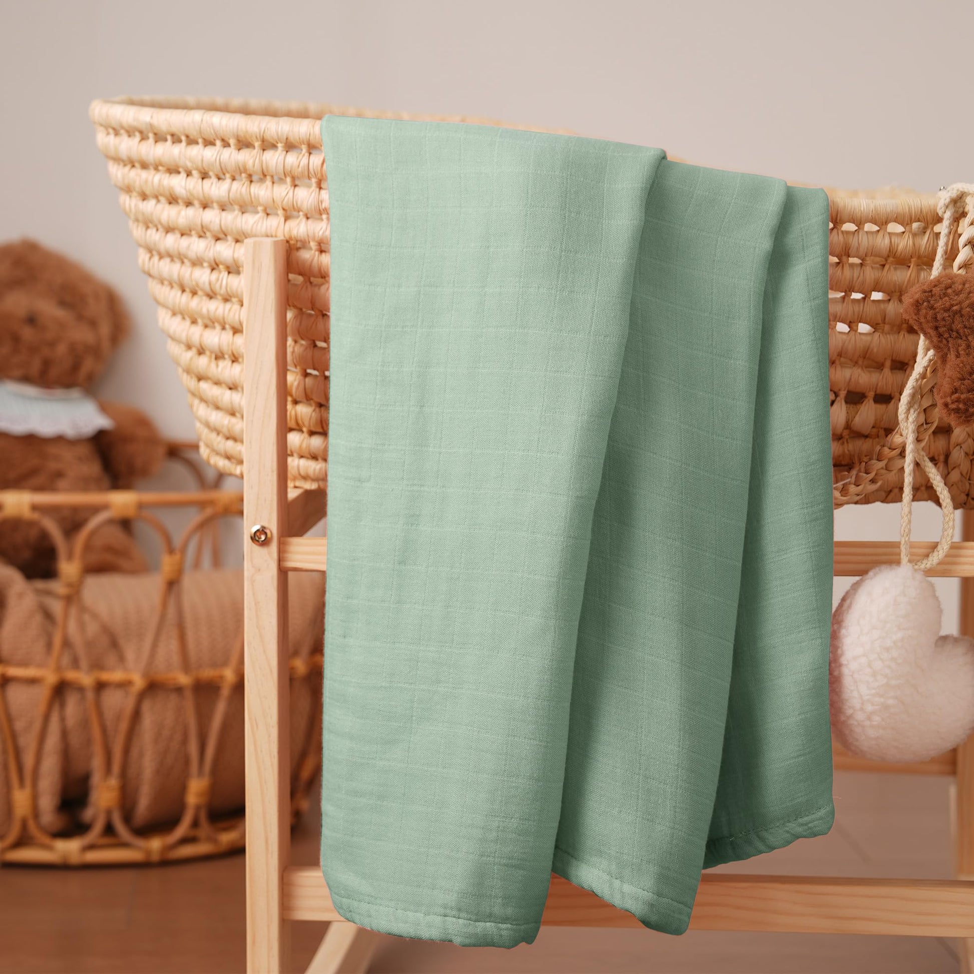 Muslin Bamboo Swaddle Blankets Green, 4 Pack